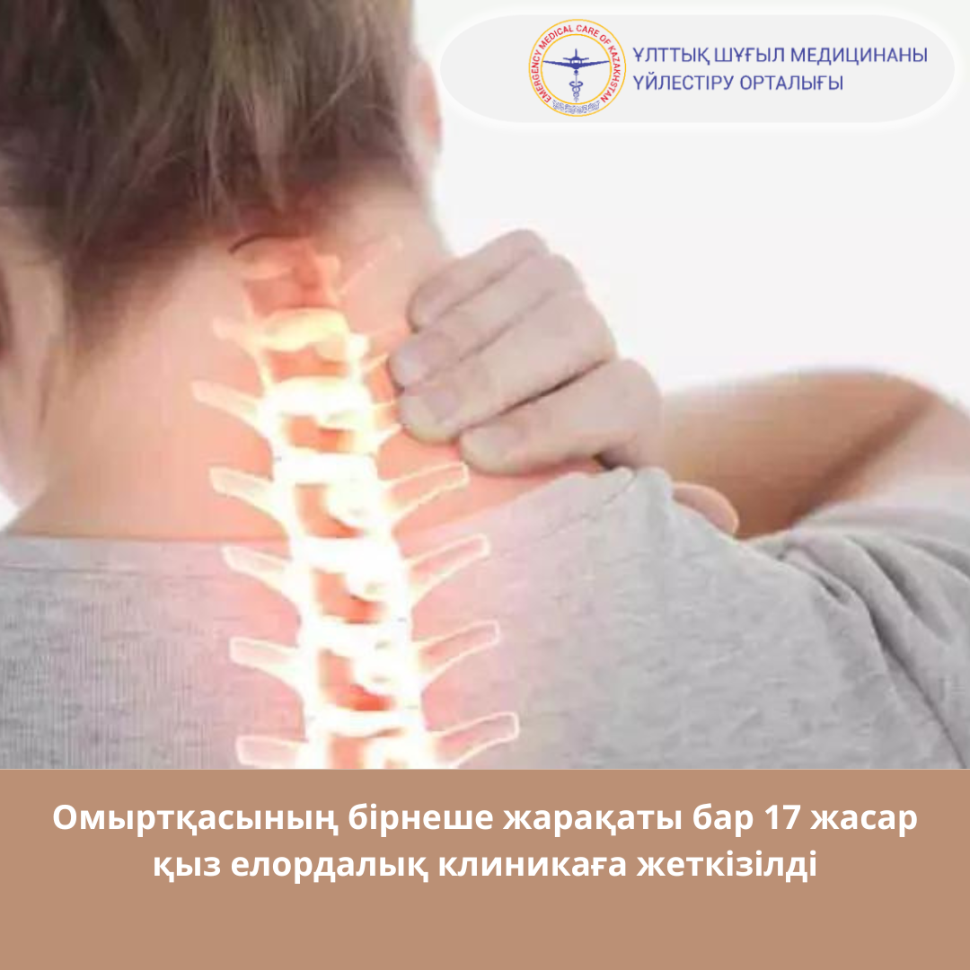 Жұлынның ауыр жарақатын, неврологиялық симптоматикасын, пациенттің жасын ескере отырып, облыстық аурухананың қабырғасында жүргізілмейтін жедел емдеу жүргізу үшін пациентті медициналық авиация желісі арқылы «Ұлттық нейрохирургия орталығына» ауыстыру қажеттілігі туралы шешім қабылданды.