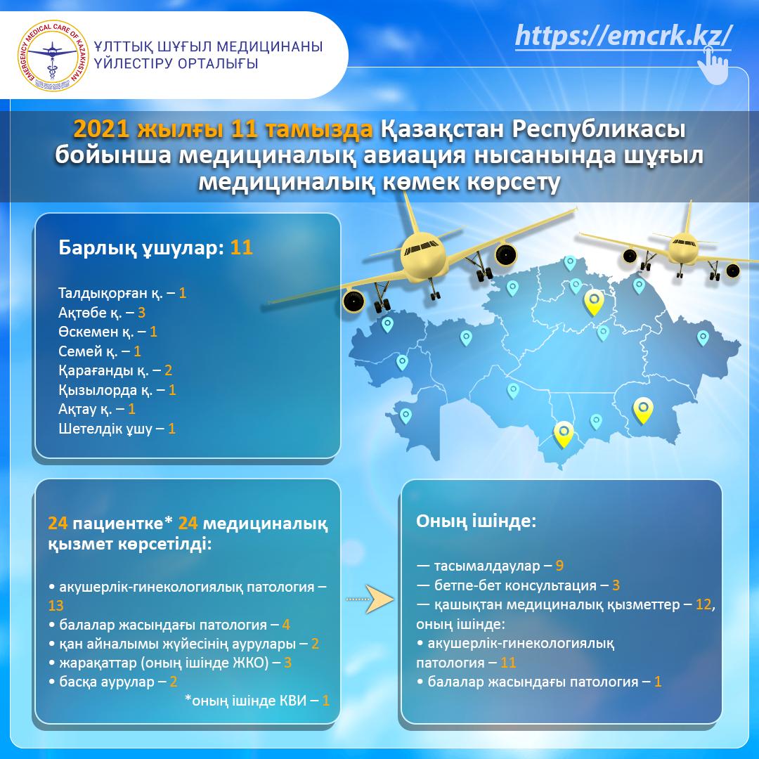 2021 жылғы 11 тамызда Қазақстан Республикасы бойынша медициналық авиация нысанында шұғыл медициналық көмек көрсету