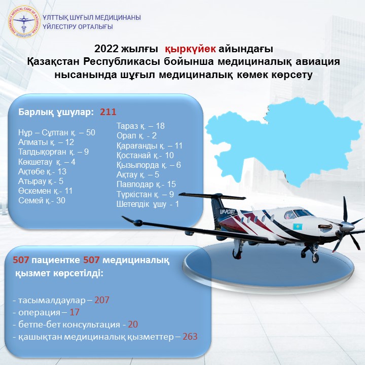 2022 жылғы қыркүйек айындағы Қазақстан Республикасы бойынша медициналық авиация нысанында шұғыл медициналық көмек көрсету