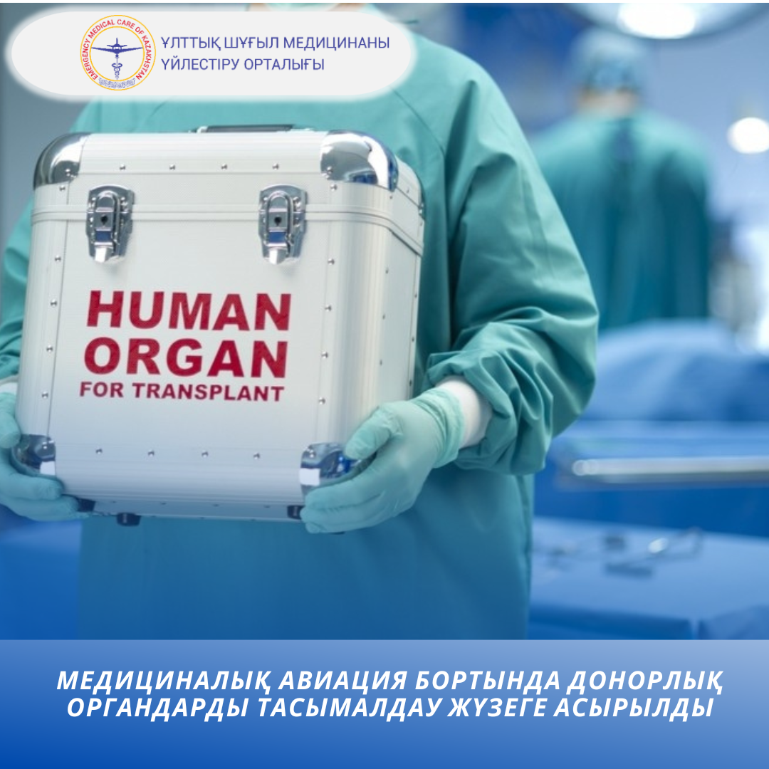 2022 жылғы 16 қарашада жедел өтінім бойынша Ұлттық ғылыми кардиохирургиялық орталық пен Ұлттық онкология және трансплантология орталығының трансплантологтар тобы донорлық органдарды алу үшін Шымкент қаласына медициналық авиация бортымен ұшып шықты.