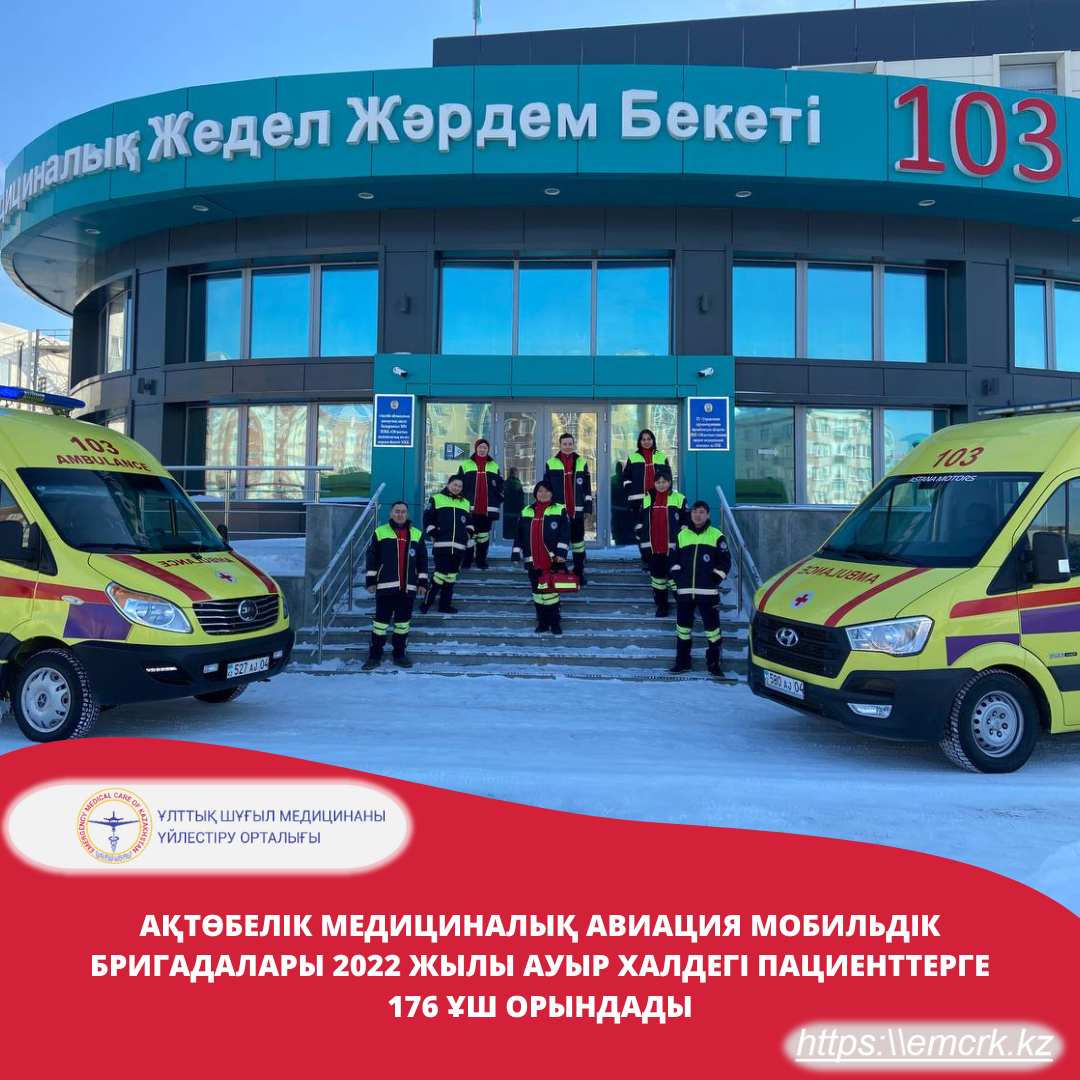 2022 жылы Ақтөбе облысы бойынша 176 ұшу орындалды, 187 пациентке 188 медициналық қызмет көрсетілді, оның ішінде: 174-і тасымалданды, орнында 3 бетпе-бет консультация өткізілді, 11 операция орындалды. Күн сайын Ақтөбе облысы бойынша ауыр халдегі пациенттерге мониторинг жүргізіледі. Республикалық және облыстық жетекші клиникалардың қатысуымен 120 қашықтан медициналық қызмет ұйымдастырылды.
