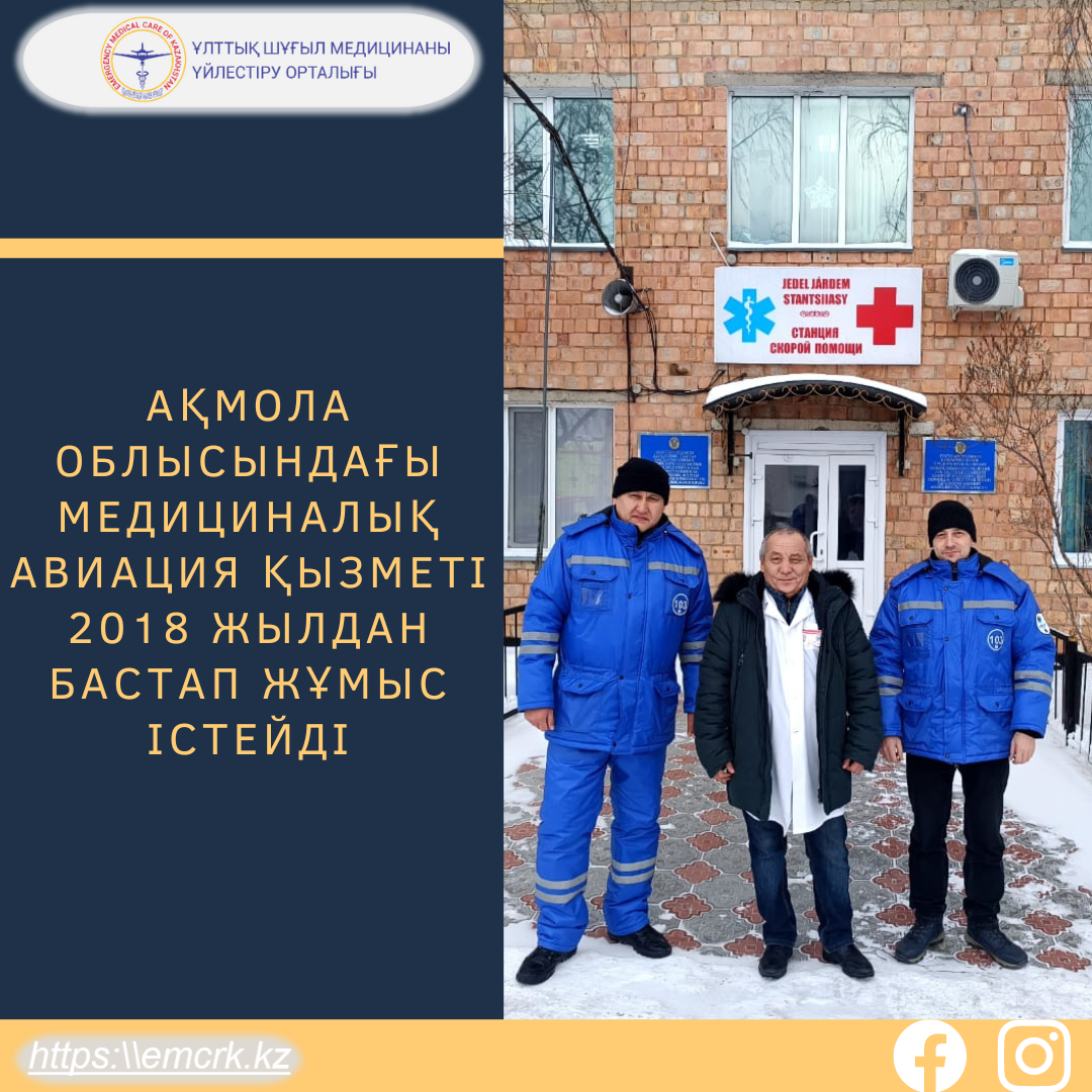 Халыққа көрсетілетін шұғыл медициналық қызметтер сапасының жеделдігін жақсарту мақсатында 2018 жылдан бастап Ақмола облысында Облыстық жедел медициналық жәрдем станциясының жанында медициналық авиация бөлімшесі жұмыс істейді.