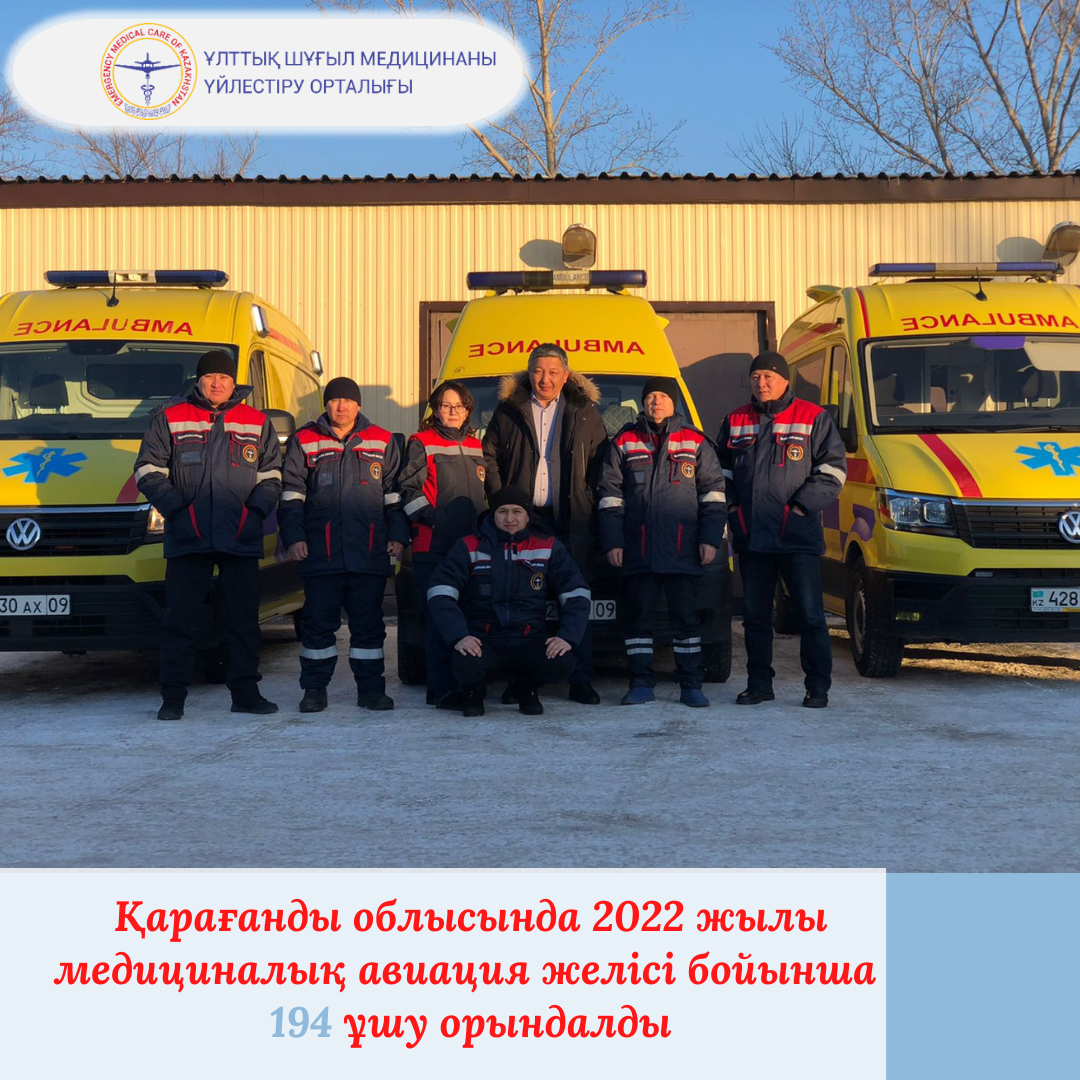 Медициналық авиацияның мобильдік бригадалары 2022 жылдың 12 айында Қарағанды облысы бойынша барлығы 194 ұшуды орындады, оның ішінде: АН 2 ұшағында- 175 және ЕС – 145 тікұшағында - 19. Барлығы 225 медициналық қызмет көрсетілді: 208 пациент тасымалданды (92,5 %); 8 пациентке бетпе-бет консультациялық көмек көрсетілді, аудандық ауруханалар жағдайында 9 пациентке операция жасалды.