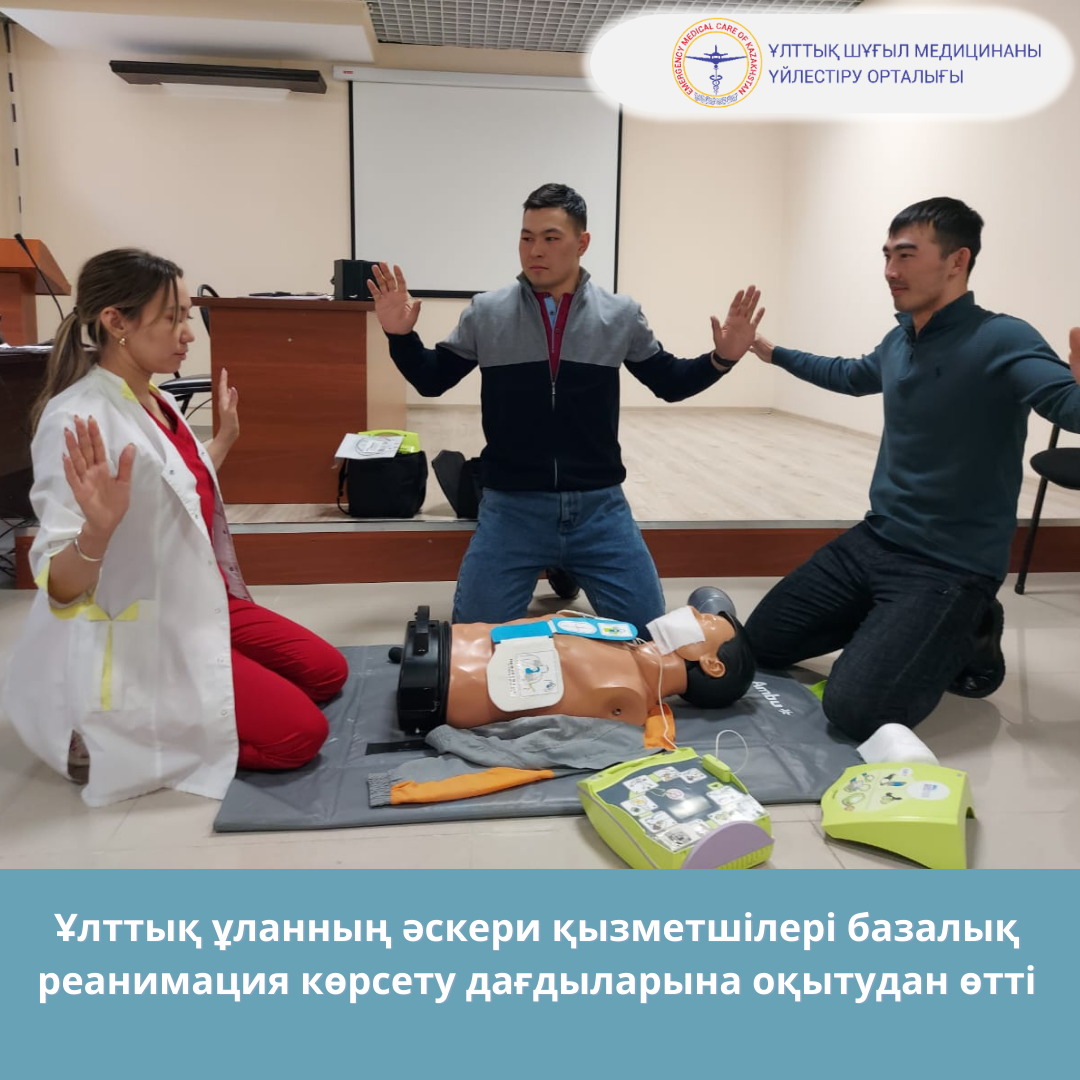 ҰШМҮО Оқыту-тренингтік орталығында Ұлттық ұланның 80 әскери қызметшісі бір апта ішінде базалық реанимация (BLS) көрсету негіздеріне оқытудан өтті. Мастер-классты дәрігер-нұсқаушы Айнұр Әлиева өткізді.
