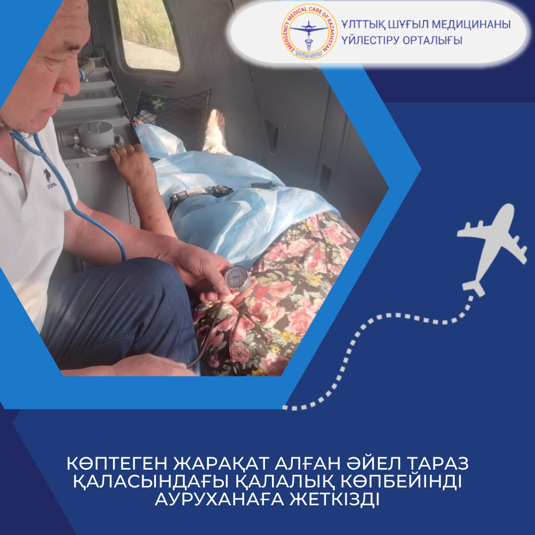 Шұғыл жағдайды, жедел емдеу қажеттілігін ескере отырып, пациент тікұшақпен реаниматологтің және травматологтың алып жүруімен қалалық клиникаға жеткізілді, онда пациентке одан әрі медициналық көмек көрсетіледі.