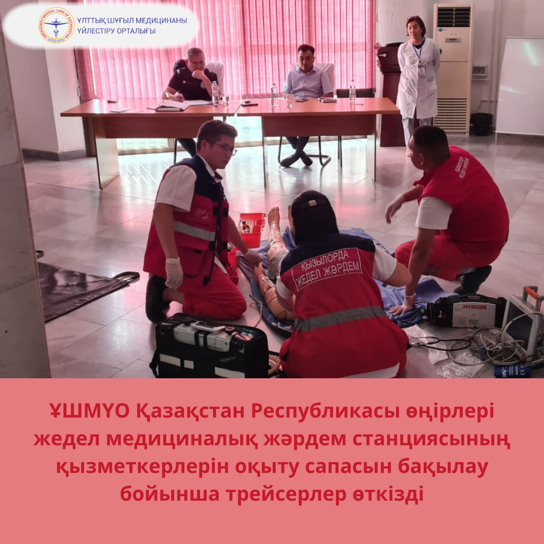 «2022-2023 жылдарға арналған Қазақстан Республикасында жедел медициналық көмек көрсетуді ұйымдастыруды жетілдіру жөніндегі жол картасы» 15-тармағын іске асыру шеңберінде 28-29 тамызда Қостанай қаласында, сондай-ақ 4-5 қыркүйекте Қызылорда қаласында Қазақстан Республикасы өңірлері жедел медициналық жәрдем станцияларының қызметкерлерін халықаралық стандарттарға сәйкес BLS, ACLS, PALS, PhTLS стандарттары бойынша трейсер нысанында жедел медициналық жәрдем көрсету дағдыларын оқыту сапасына бақылау жүргізілді.