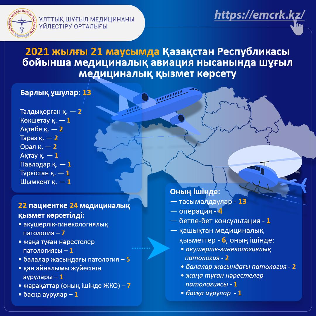 2021 жылғы 21 маусымда медициналық авиацияның мобильдік бригадасы 1978 жылы туған ер адамды тасымалдау үшін Тереңкөл ауданының ауруханасына өңірлік ұшу орындалды.