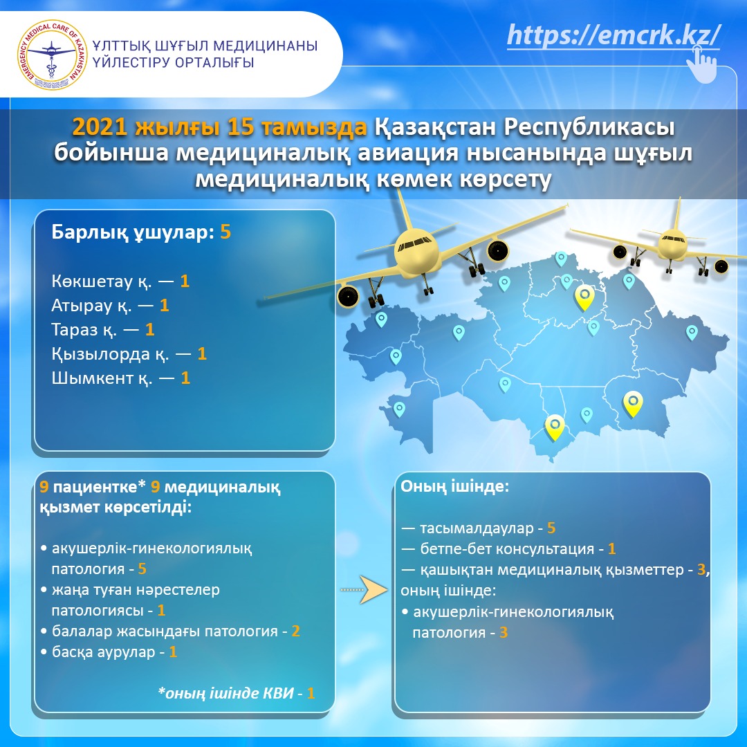 2021 жылғы 15 тамызда медициналық авиацияның мобильдік бригадасы баланы ұшақпен кардиохирургиялық клиникаға тасымалдады.