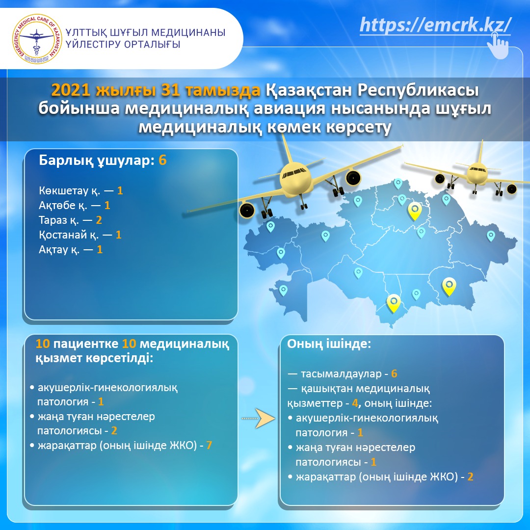 Баланың ауыр жағдайын және жағдайдың жеделділігін, сондай-ақ аудандық ауруханада балалар реаниматологының жоқтығын ескере отырып, баланы медициналық авиация бортымен одан әрі емдеу үшін оны сол күні Қостанай қаласының Облыстық балалар ауруханасына тасымалдады.