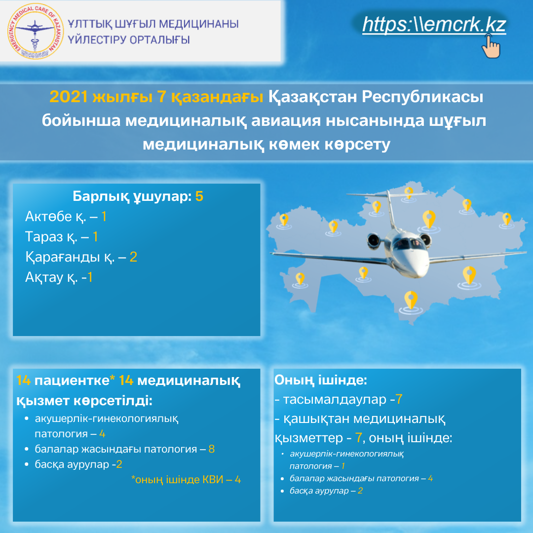 2021 жылғы 7 қазандағы Қазақстан Республикасы бойынша медициналық авиация нысанында шұғыл медициналық көмек көрсету