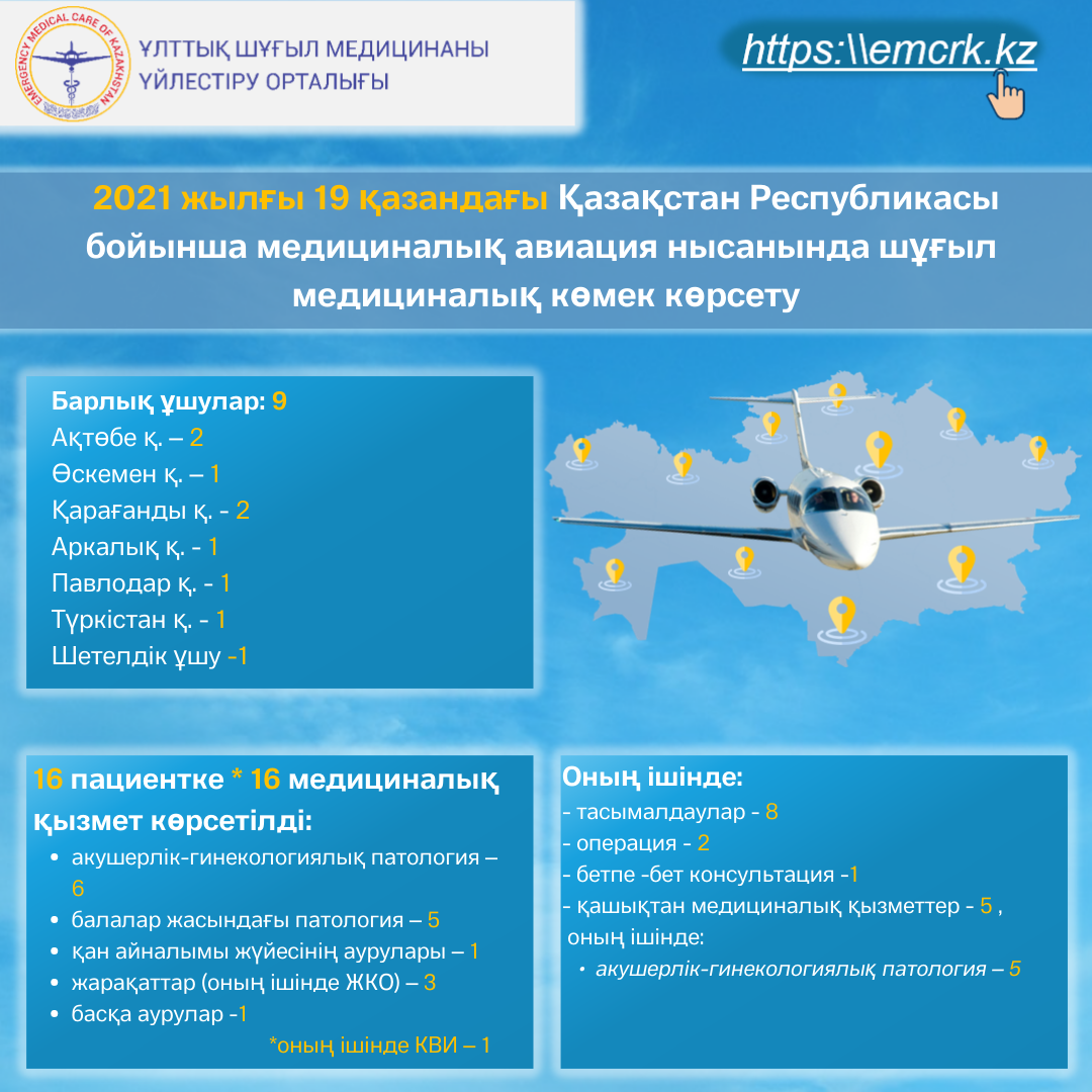 2021 жылғы 19 қазандағы Қазақстан Республикасы бойынша медициналық авиация нысанында шұғыл медициналық көмек көрсету
