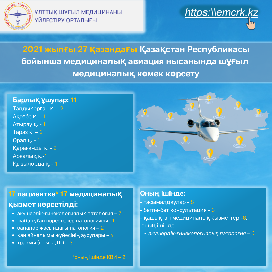 2021 жылғы 27 қазандағы Қазақстан Республикасы бойынша медициналық авиация нысанында шұғыл медициналық көмек көрсету