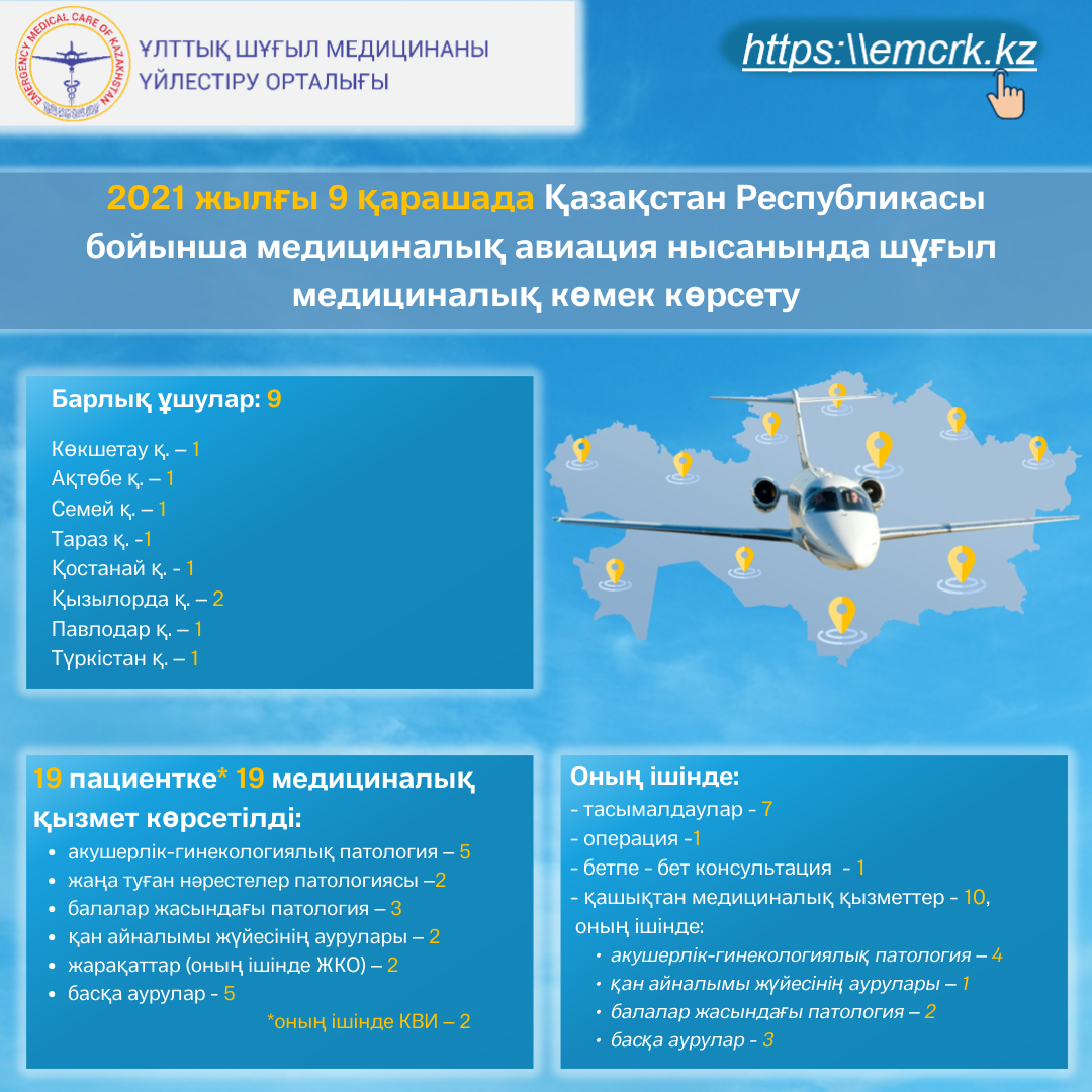 2021 жылғы 9 қарашада Қазақстан Республикасы бойынша медициналық авиация нысанында шұғыл медициналық көмек көрсету