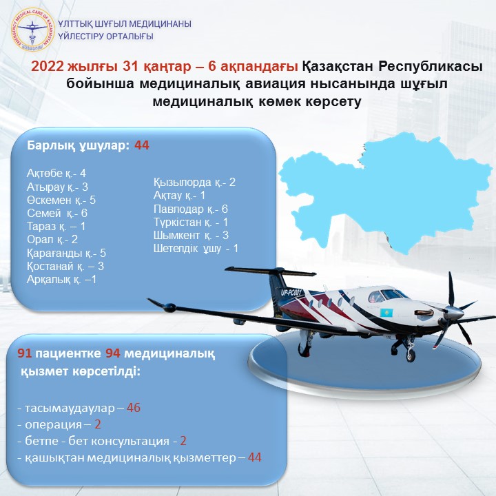 2022 жылғы 31 қаңтар – 6 ақпандағы Қазақстан Республикасы бойынша медициналық авиация нысанында шұғыл медициналық көмек көрсету