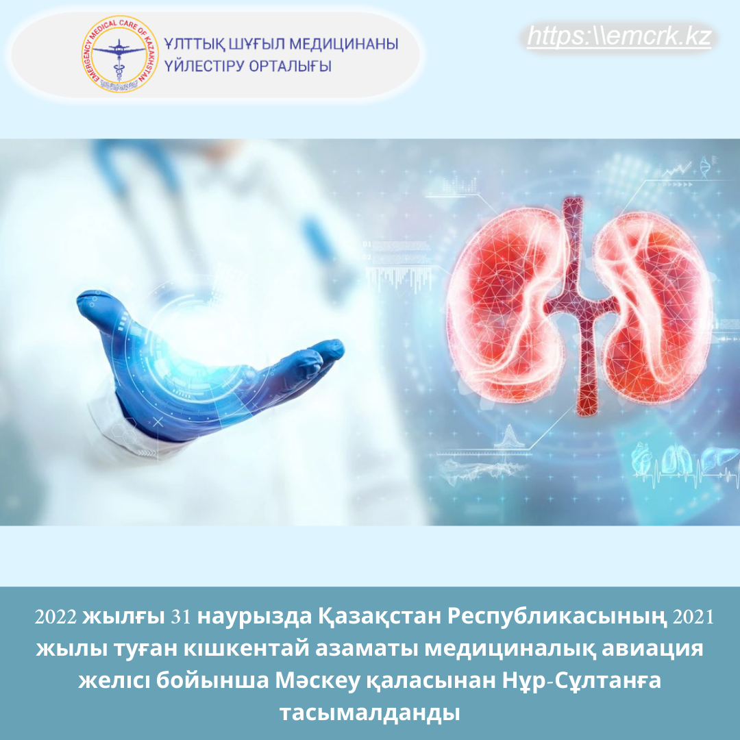 31 наурызда Ұлттық шұғыл медицинаны үйлестіру орталығы Нұр-Сұлтан қаласының Ана мен бала ұлттық ғылыми орталығына сәбиді тасымалдау үшін Мәскеу қаласына әуе кемесінің ұшуын ұйымдастырды