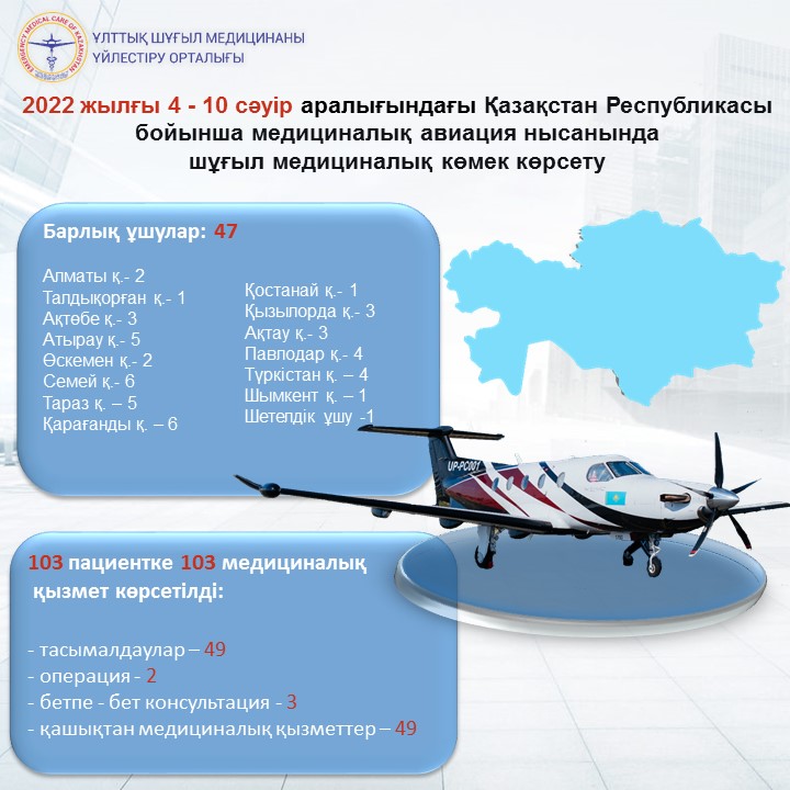 2022 жылғы 4 - 10 сәуір аралығындағы Қазақстан Республикасы бойынша медициналық авиация нысанында шұғыл медициналық көмек көрсету
