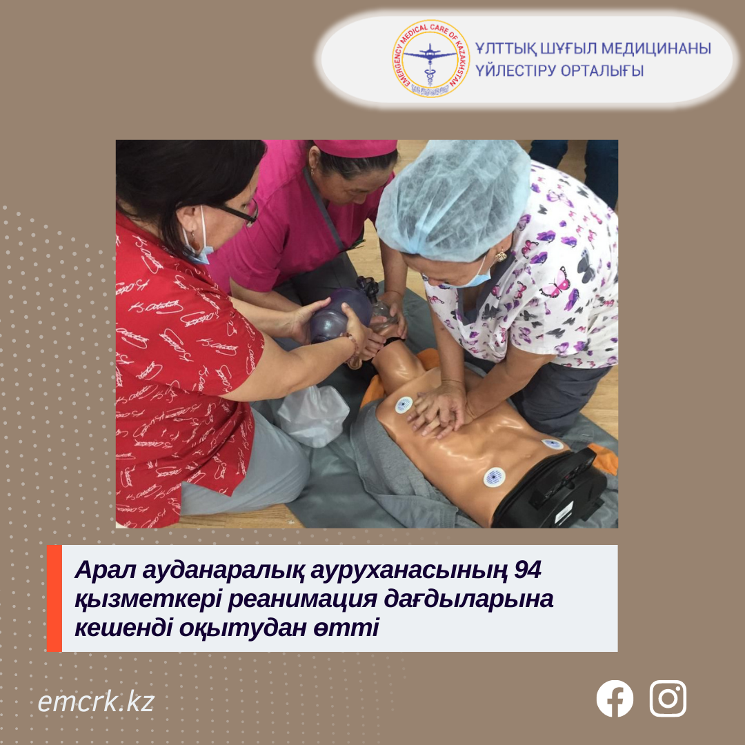 Ұлттық шұғыл медицинаны үйлестіру орталығының сертификатталған нұсқаушысы Б.Тайбеков 2022 жылғы 13-25 маусым аралығында Арал ауданаралық ауруханасының қызметкерлерін базалық, кеңейтілген жүрек – өкпе реанимациясы, оның ішінде педиатрия дағдыларына, сондай-ақ жарақат кезінде емдеуге жатқызуға дейінгі кезеңде медициналық көмек көрсету дағдыларына оқыту жүргізді.