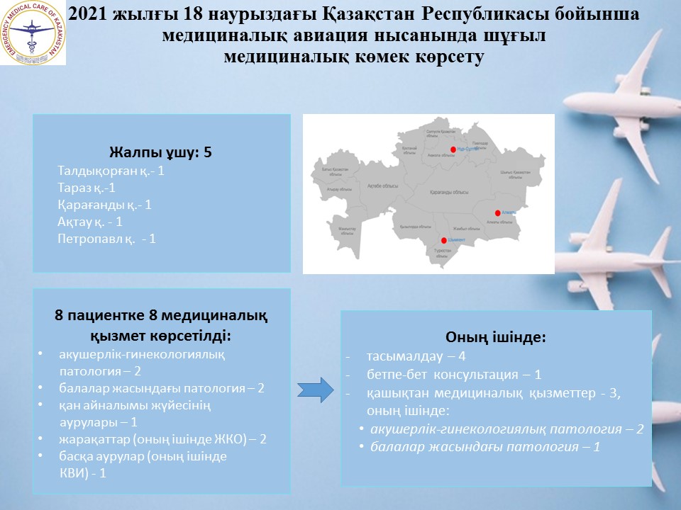 2021 жылғы 18 наурыздағы Қазақстан Республикасы бойынша медициналық авиация нысанында шұғыл медициналық көмек көрсету