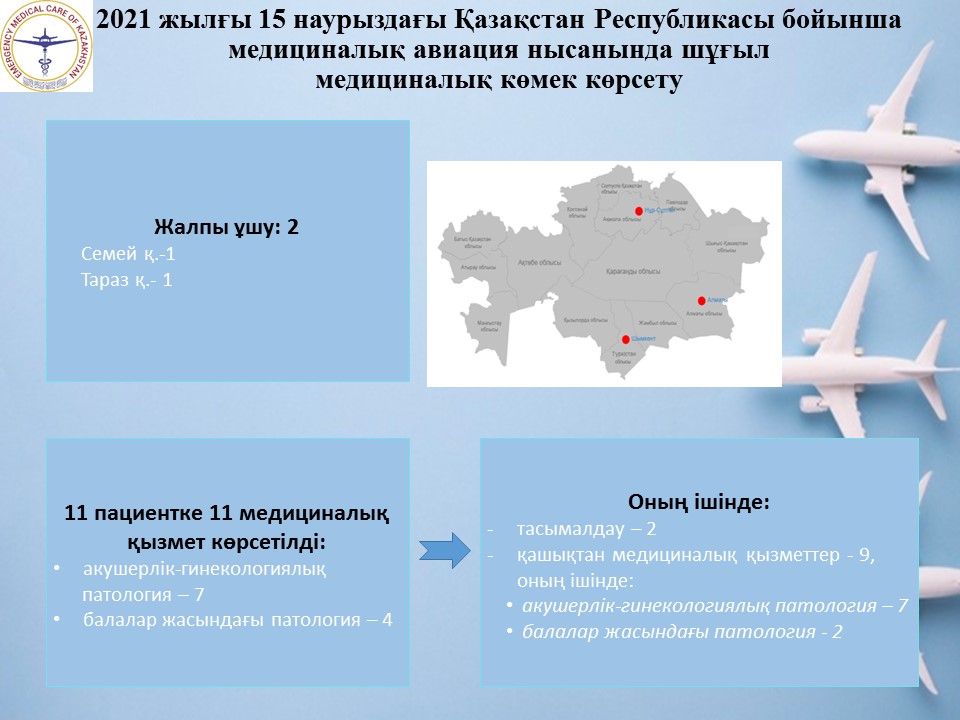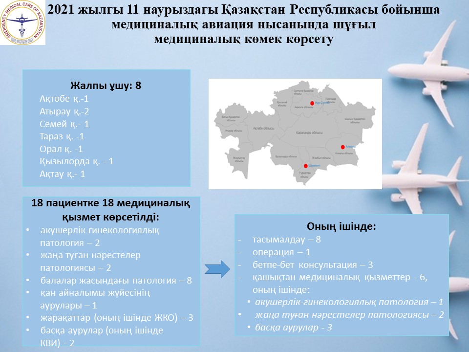 2021 жылғы 11 наурыздағы Қазақстан Республикасы бойынша медициналық авиация нысанында шұғыл медициналық көмек көрсету