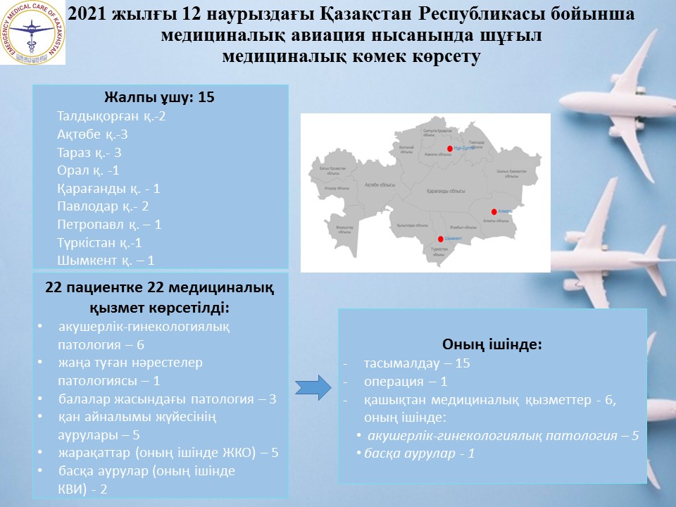 2021 жылғы 12 наурыздағы Қазақстан Республикасы бойынша медициналық авиация нысанында шұғыл медициналық көмек көрсету