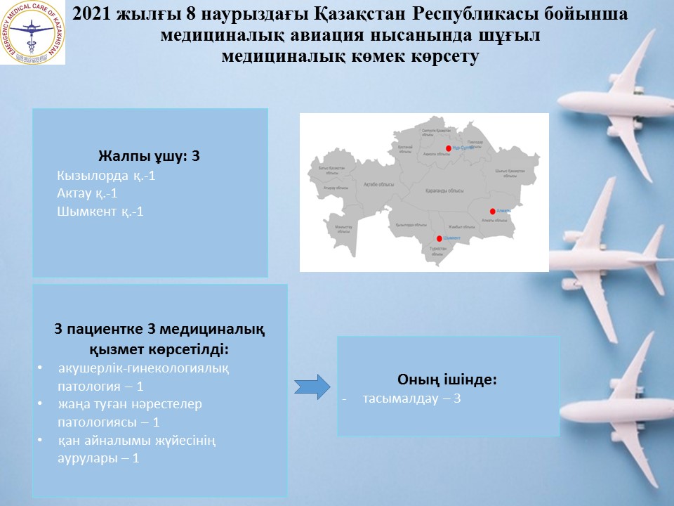 2021 жылғы 8 наурыздағы Қазақстан Республикасы бойынша медициналық авиация нысанында шұғыл медициналық көмек көрсету