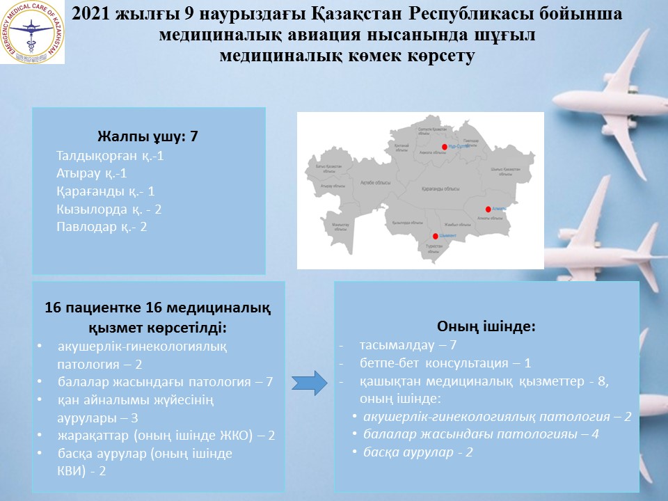 2021 жылғы 9 наурыздағы Қазақстан Республикасы бойынша медициналық авиация нысанында шұғыл медициналық көмек көрсету