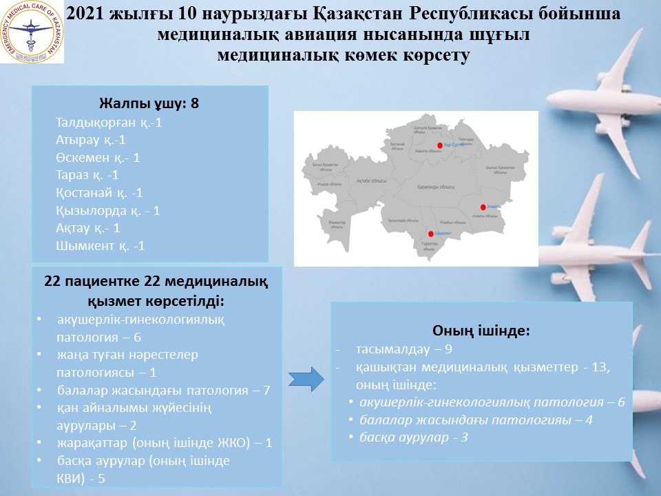 2021 жылғы 10 наурыздағы Қазақстан Республикасы бойынша медициналық авиация нысанында шұғыл медициналық көмек көрсету