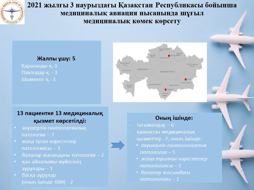 2021 жылғы 3 наурыздағы Қазақстан Республикасы бойынша медициналық авиация нысанында шұғыл медициналық көмек көрсету