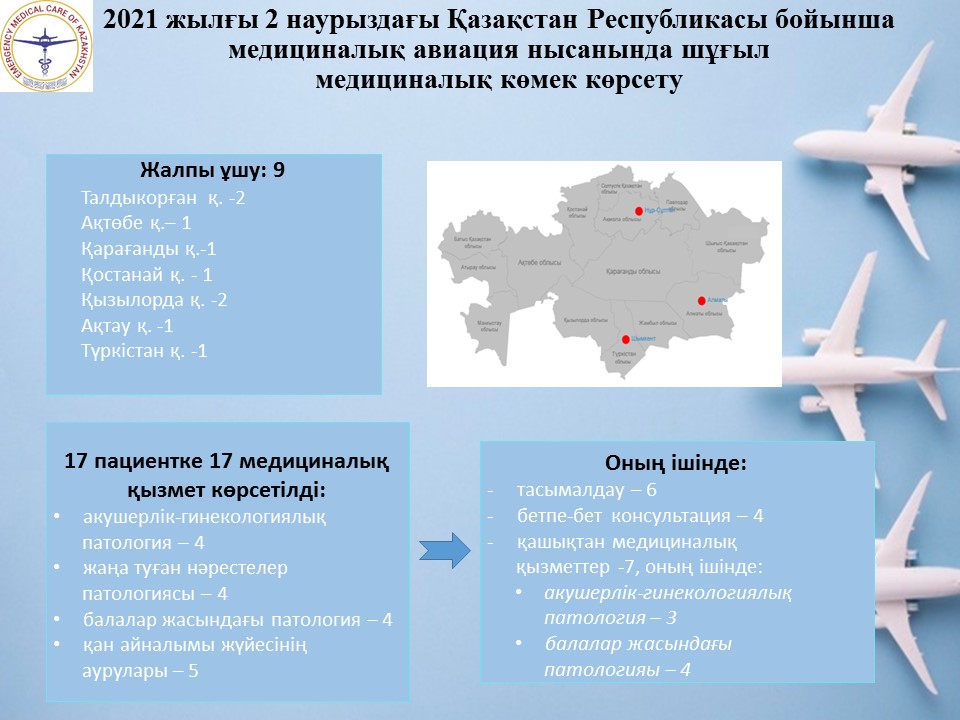 2021 жылғы 2 наурыздағы Қазақстан Республикасы бойынша медициналық авиация нысанында шұғыл медициналық көмек көрсету