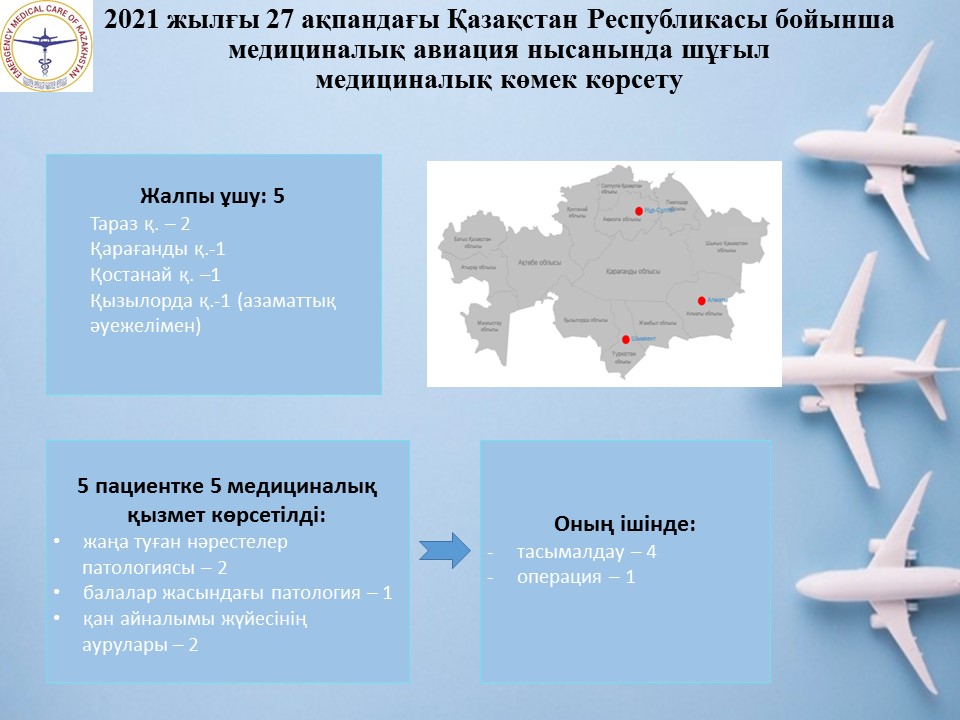 2021 жылғы 27 ақпандағы Қазақстан Республикасы бойынша медициналық авиация нысанында шұғыл медициналық көмек көрсету