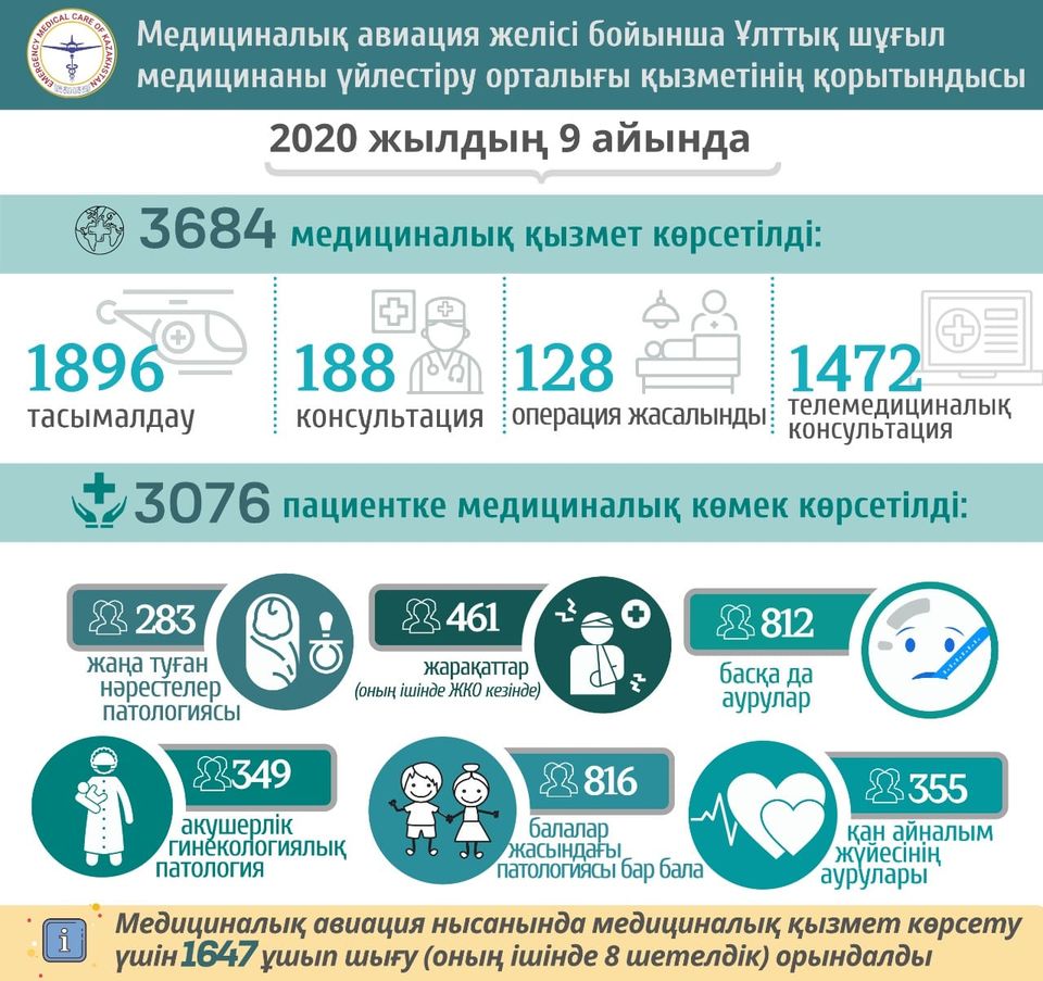 Өткен тәулікте (2020 жылғы 27 қазан) ел бойынша 103 қызметі шақыртуларының жалпы саны 16 556 құрады.