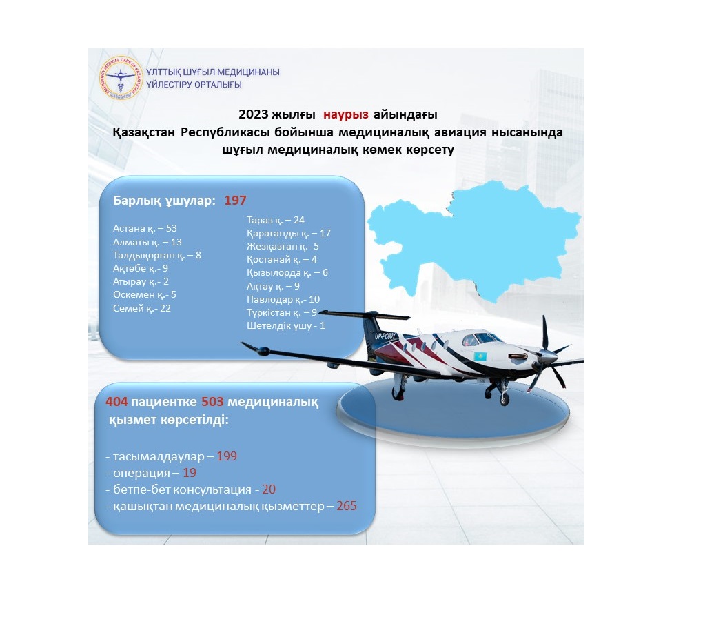 2023 жылғы наурыз айындағы Қазақстан Республикасы бойынша медициналық авиация нысанында шұғыл медициналық көмек көрсету