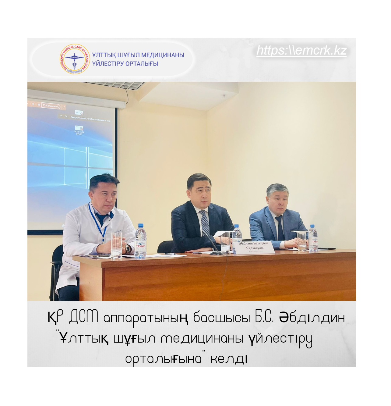 ҚР ДСМ аппаратының басшысы Б.С. Әбділдин "Ұлттық шұғыл медицинаны үйлестіру орталығына" келді