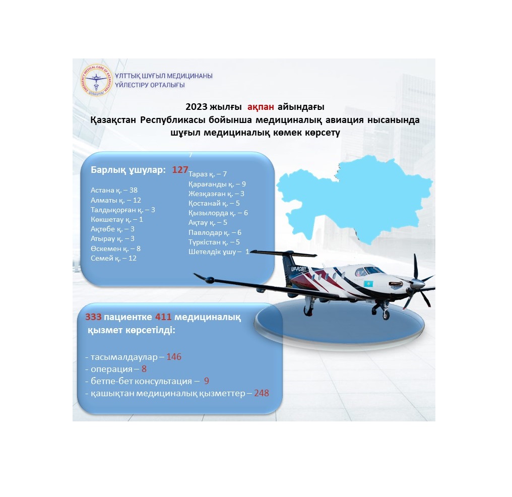 2023 жылғы ақпан айындағы Қазақстан Республикасы бойынша медициналық авиация нысанында шұғыл медициналық көмек көрсету