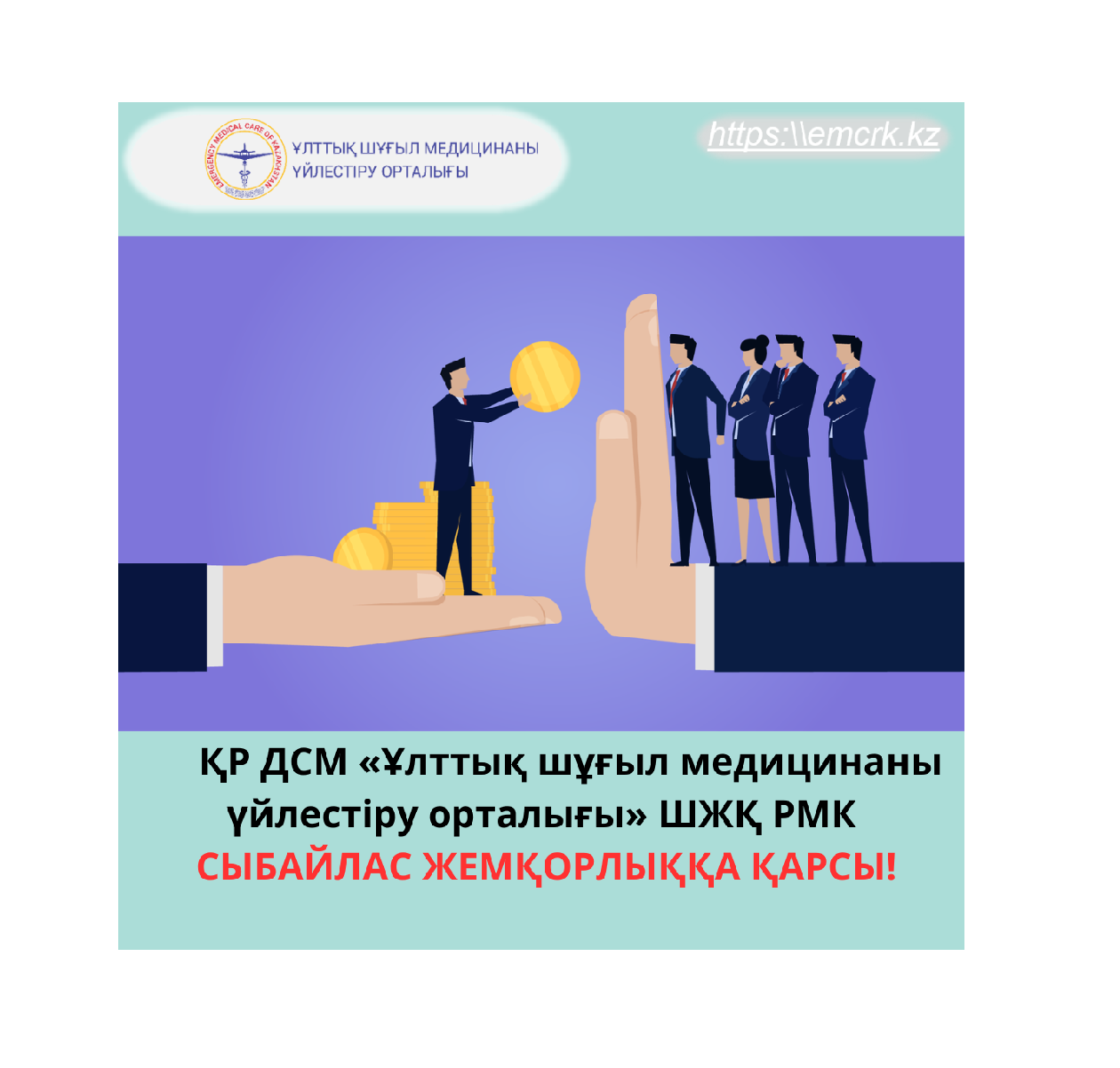 ҚР ДСМ «Ұлттық шұғыл медицинаны үйлестіру орталығы» ШЖҚ РМК СЫБАЙЛАС ЖЕМҚОРЛЫҚҚА ҚАРСЫ!