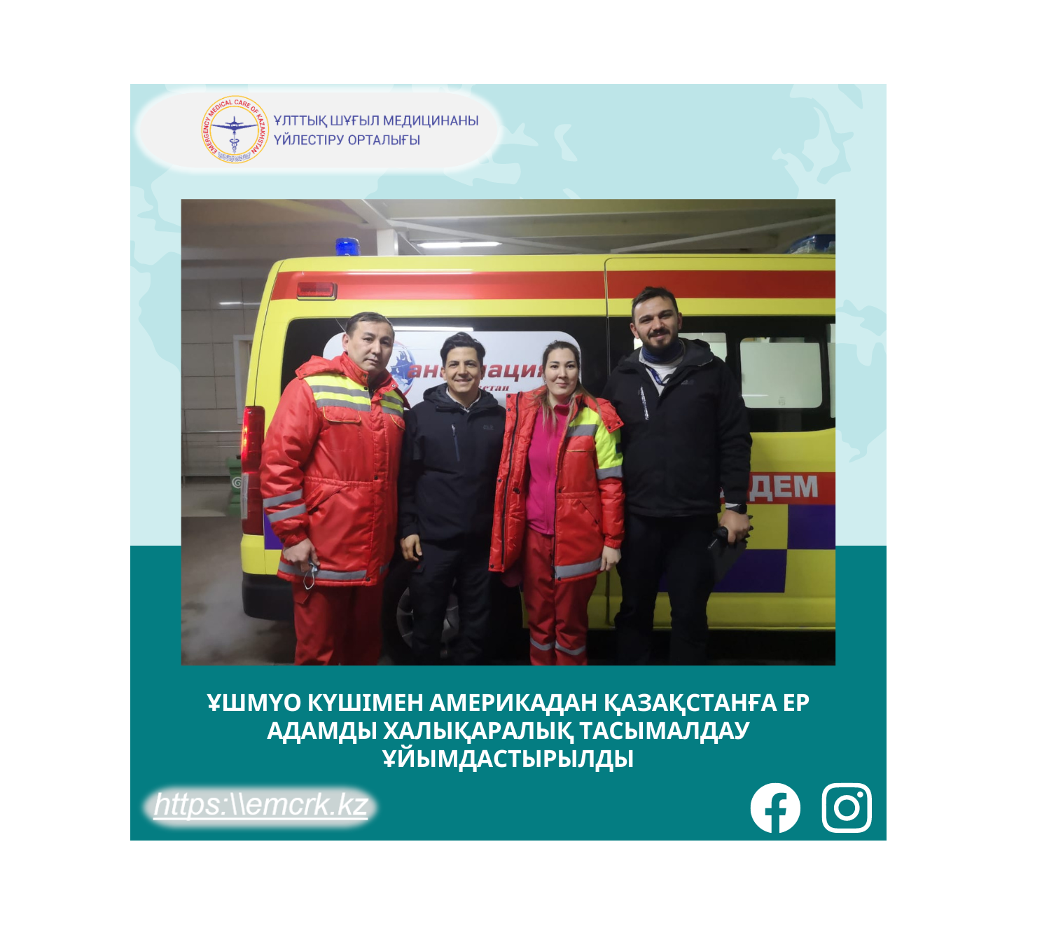 ҰШМҮО күшімен Америкадан Қазақстанға ер адамды халықаралық тасымалдау ұйымдастырылды