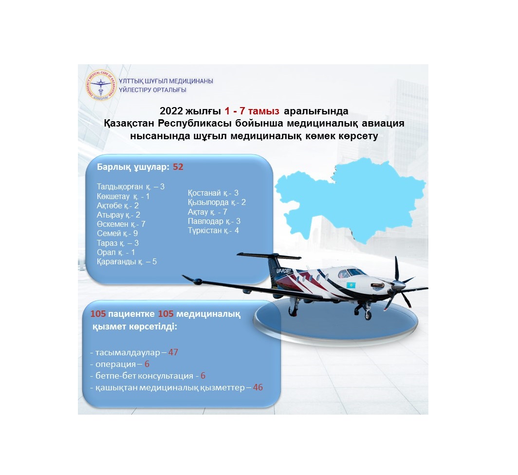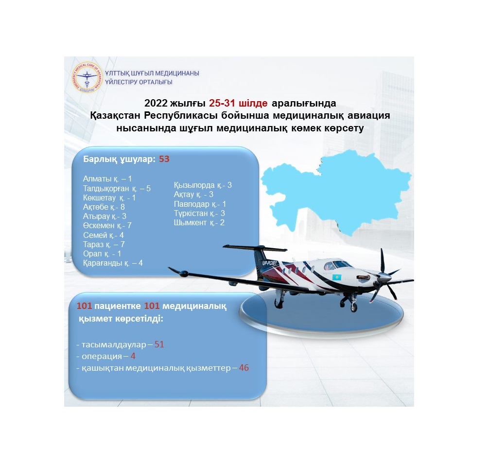 2022 жылғы 25-31 шілде аралығында Қазақстан Республикасы бойынша медициналық авиация нысанында шұғыл медициналық көмек көрсету