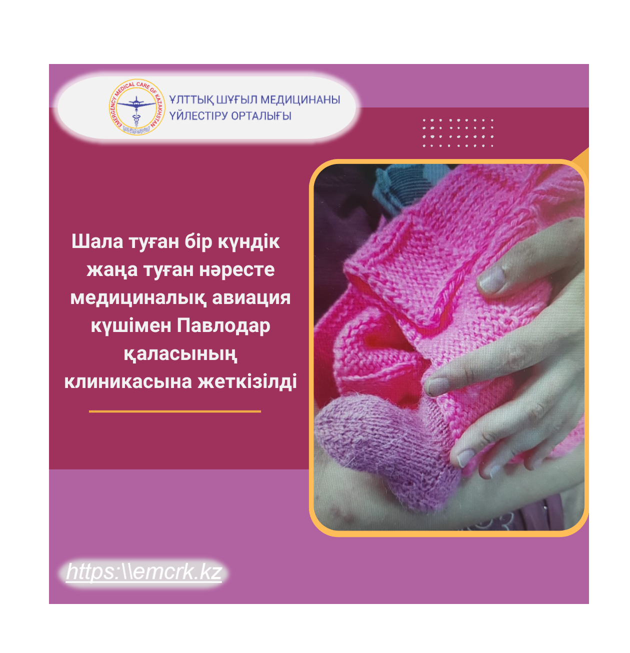 Шала туған бір күндік жаңа туған нәресте медициналық авиация күшімен Павлодар қаласының клиникасына жеткізілді