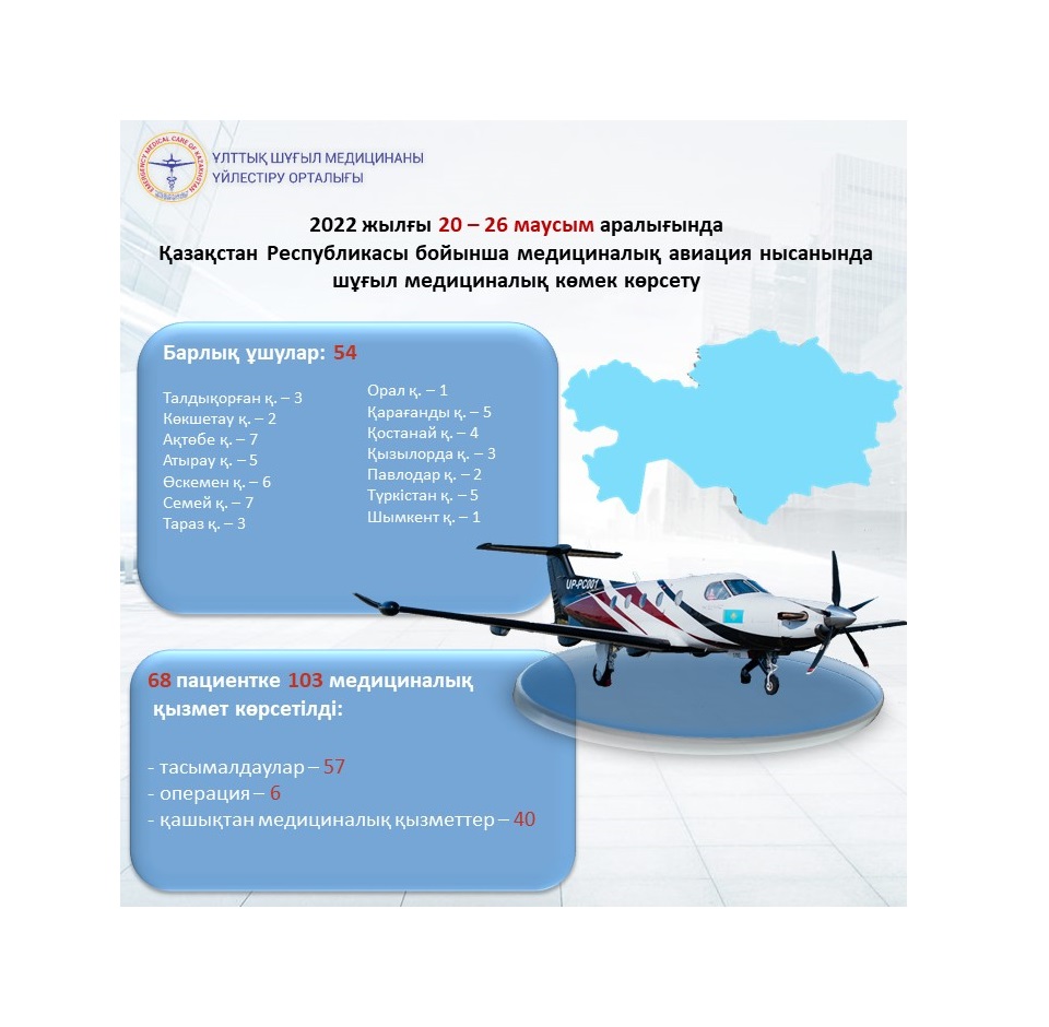 2022 жылғы 20 - 26 маусым Қазақстан Республикасы бойынша медициналық авиация нысанында шұғыл медициналық көмек көрсету