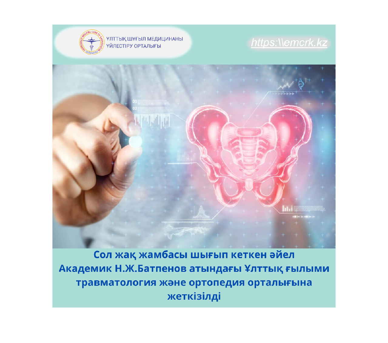 Сол жақ жамбасы шығып кеткен әйел Академик Н.Ж.Батпенов атындағы Ұлттық ғылыми травматология және ортопедия орталығына жеткізілді