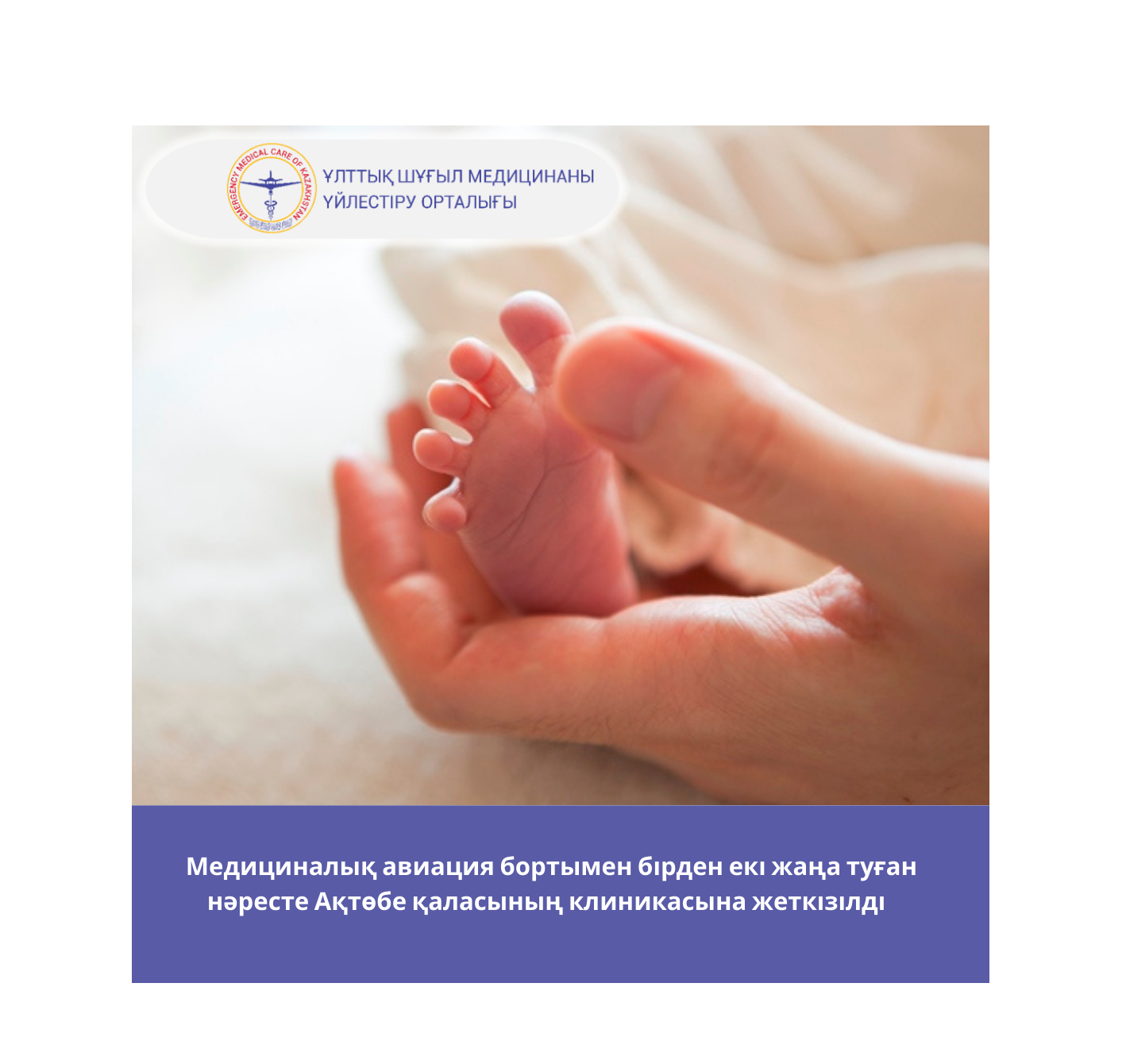 Медициналық авиация бортымен бірден екі жаңа туған нәресте Ақтөбе қаласының клиникасына жеткізілді