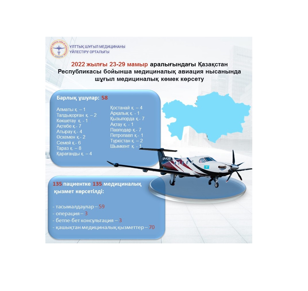 2022 жылғы 23-29 мамыр аралығындағы Қазақстан Республикасы бойынша медициналық авиация нысанында шұғыл медициналық көмек көрсету