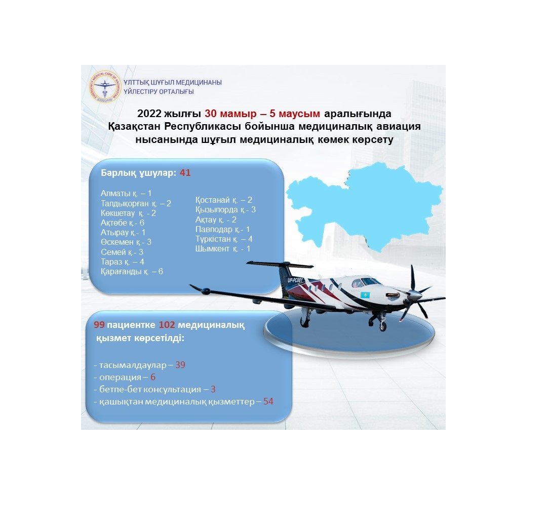 2022 жылғы 30 мамыр – 5 маусым аралығында Қазақстан Республикасы бойынша медициналық авиация нысанында шұғыл медициналық көмек көрсету