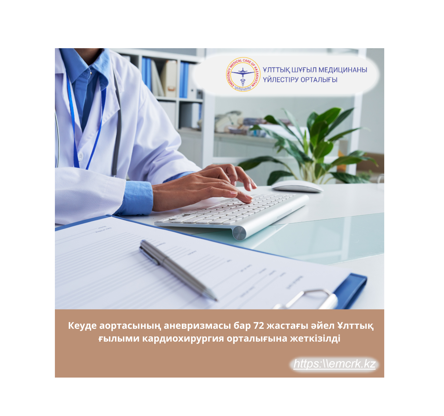 Кеуде аортасының аневризмасы бар 72 жастағы әйел Ұлттық ғылыми кардиохирургия орталығына жеткізілді