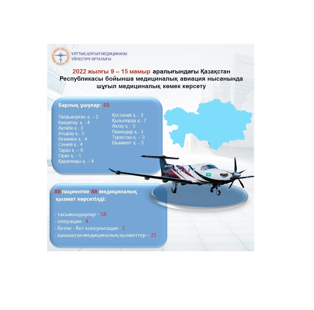 2022 жылғы 9 – 15 мамыр аралығындағы Қазақстан Республикасы бойынша медициналық авиация нысанында шұғыл медициналық көмек көрсету
