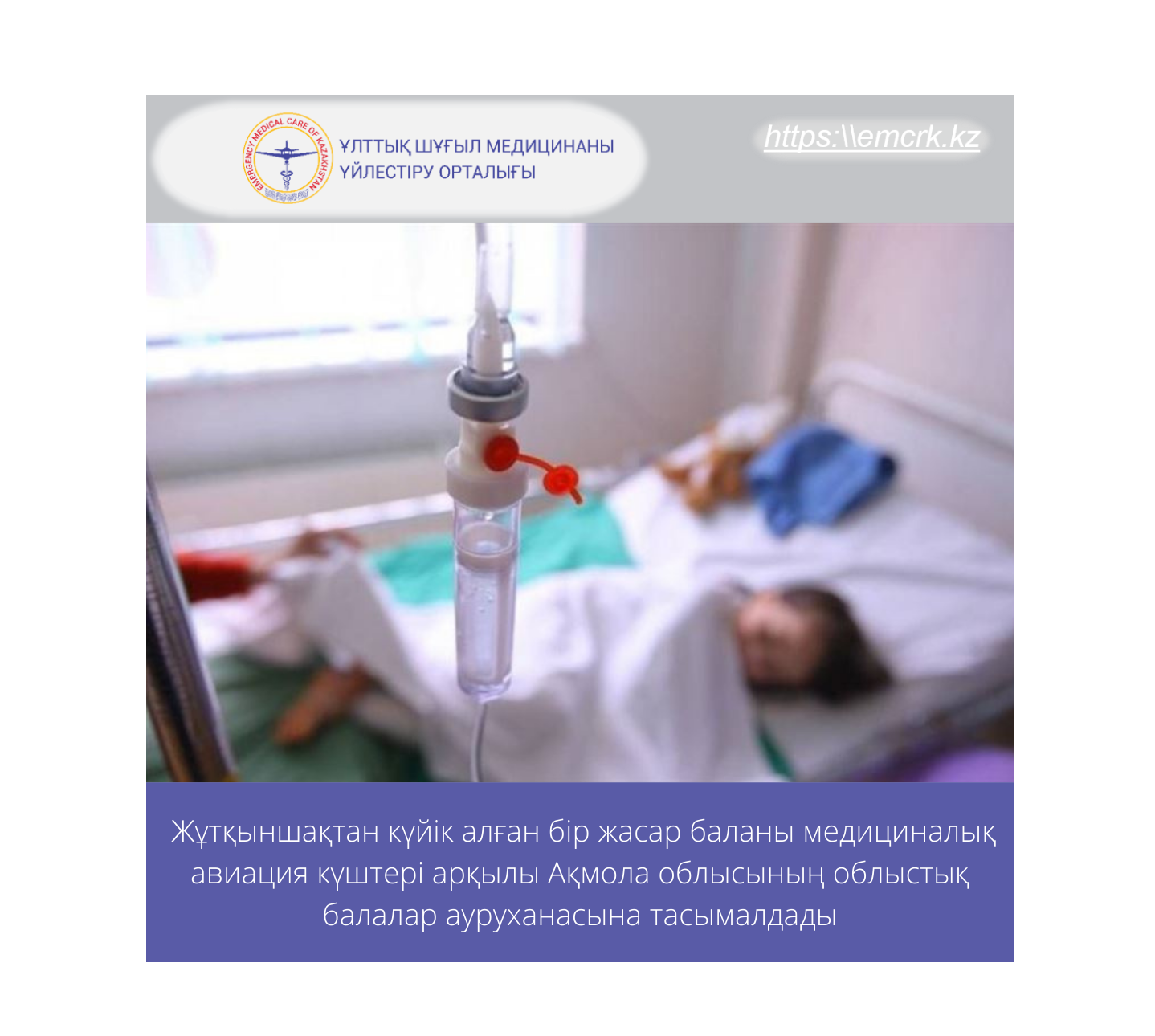 Жұтқыншақтан күйік алған бір жасар баланы медициналық авиация күштері арқылы Ақмола облысының облыстық балалар ауруханасына тасымалдады