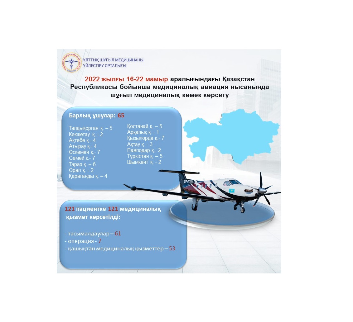 2022 жылғы 16-22 мамыр аралығындағы Қазақстан Республикасы бойынша медициналық авиация нысанында шұғыл медициналық көмек көрсету