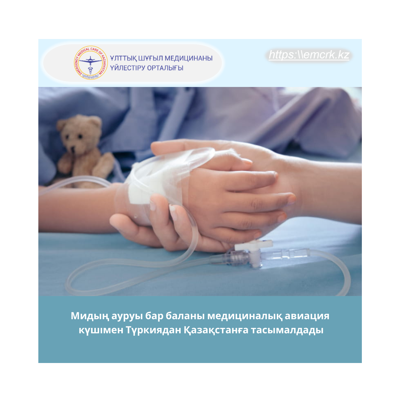Мидың ауруы бар баланы медициналық авиация күшімен Түркиядан Қазақстанға тасымалдады