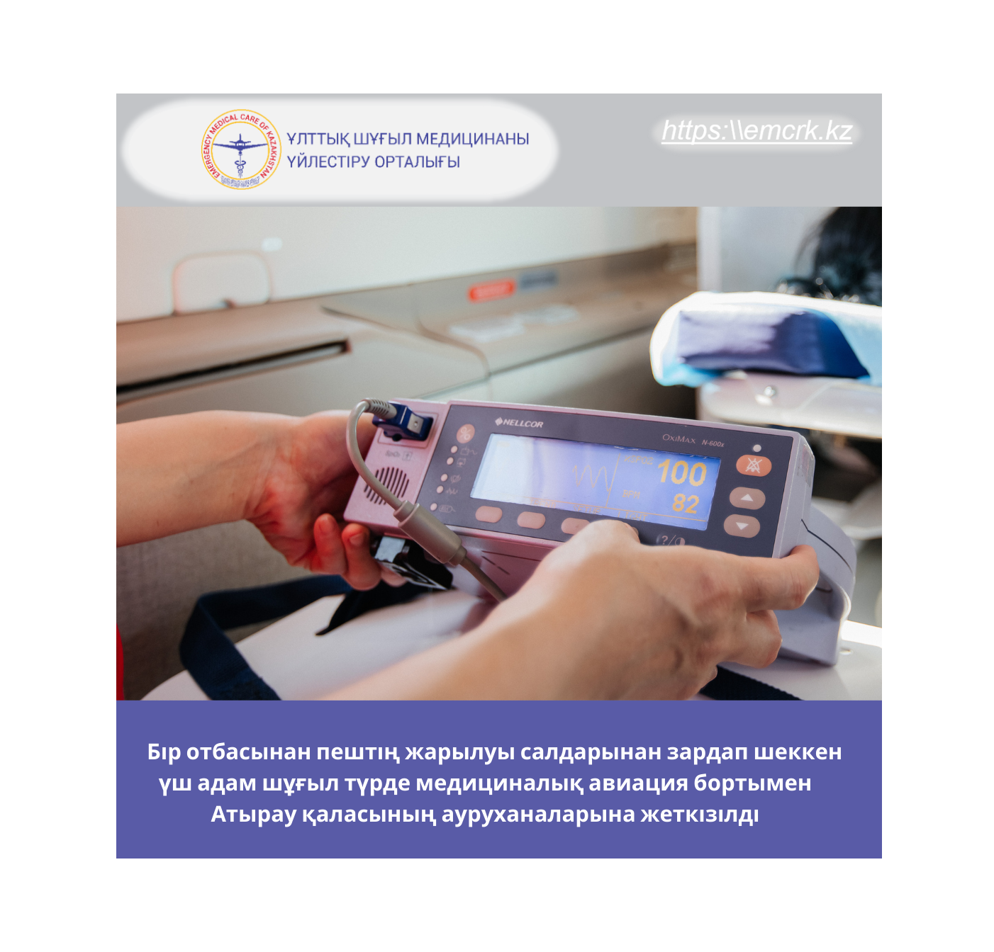 Бір отбасынан пештің жарылуы салдарынан зардап шеккен үш адам шұғыл түрде медициналық авиация бортымен Атырау қаласының ауруханаларына жеткізілді