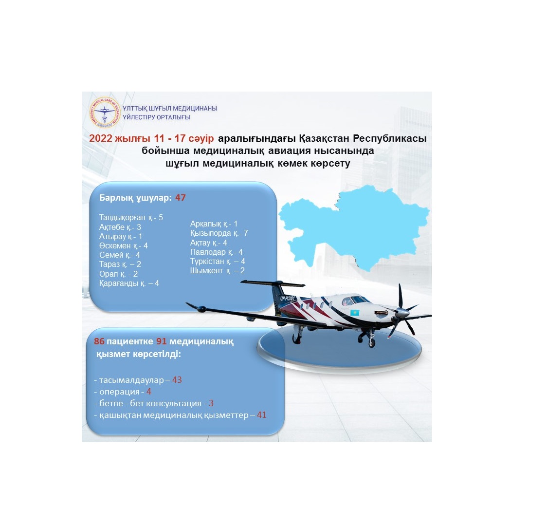 2022 жылғы 11 - 17 сәуір аралығындағы Қазақстан Республикасы бойынша медициналық авиация нысанында шұғыл медициналық көмек көрсету